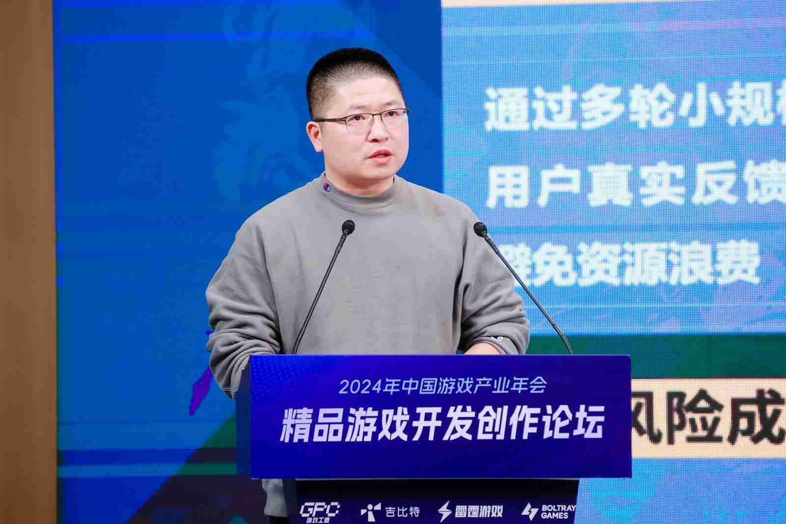 35273CTO胡兆彬以《小步快跑,,,热爱赋能》为主题,,结合35273&雷霆游戏研发理念,,探讨游戏企业如何在变化中成长,,,,在竞争中突围。。。。胡兆彬表示,,在当今游戏产品同质化、、、、市场买量成本日益攀高的情况下,,,,35273&雷霆游戏的应对策略是回到研发的本质——做让自己和用户都感到兴奋的产品。。。。在这一行动指南下,,,35273&雷霆游戏坚信,,研发必须从兴趣和热爱出发,,只有制作人热爱自己的作品,,才能避免平庸,,,脱颖而出。。。。差异化道路是产品可以生存的唯一出路,,核心是让玩家感受到产品背后的创造力和诚意,,,,而不是市场上随处可见的“模板化设计”。。针对如何在研发过程中应对不确定性,,胡兆彬分享了“小步快跑”的方法论,,即通过快速试验和反馈,,找到正确的方向,,避免资源浪费,,,,并就研发实践中遇到的问题,,,提出团队的纠偏措施和应对心法。。