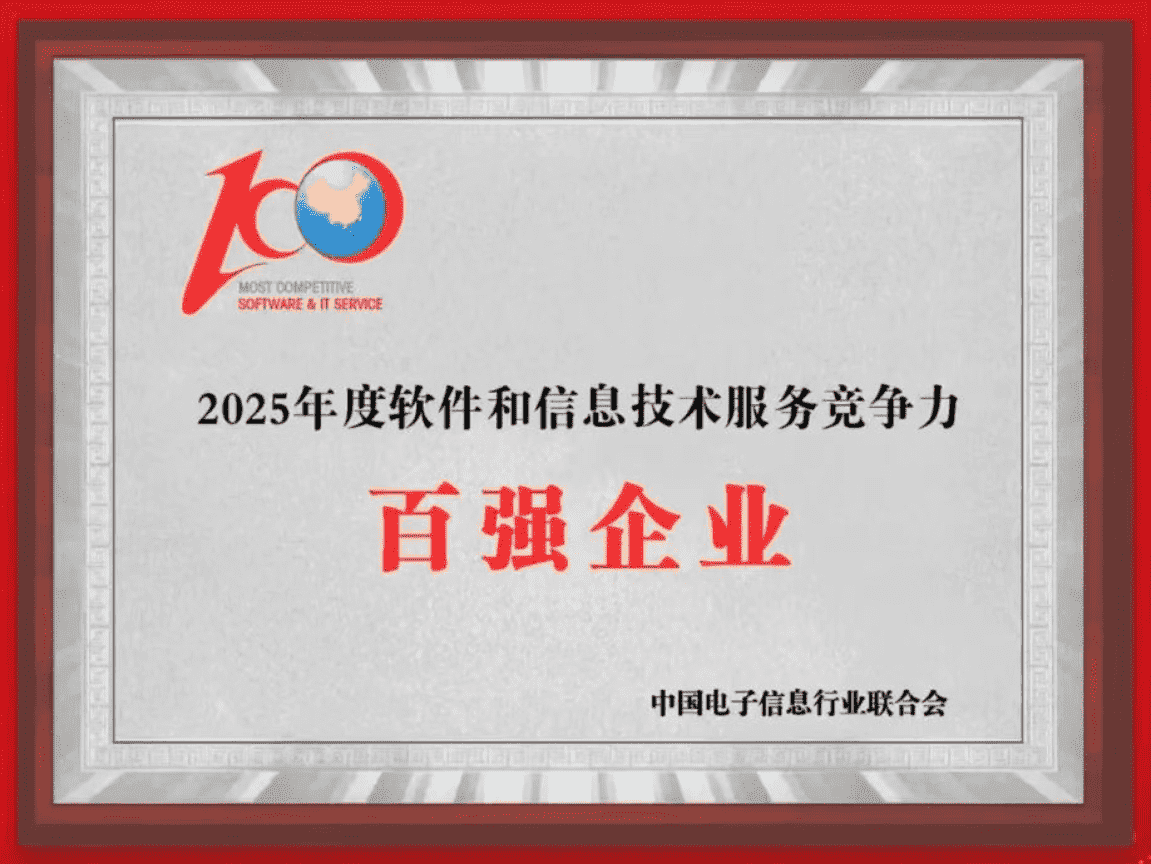 20251015日,,,中国电子信息行业联合会权威揭晓“2025年度软件和信息技术服务竞争力前百家企业名单。。。中国软件百强企业评选活动是由工业和信息化部全程指导、、、中国电子信息行业联合会牵头组织发起,,,是反映中国软件产业发展最高水平的“风向标”。。。。厦门35273网络技术股份有限公司(以下简称“35273”或“公司”)凭借自身在软件技术领域的卓越表现与杰出创新能力,,第六次入选“全国软件和信息技术服务竞争力前百家企业”称号。。。。