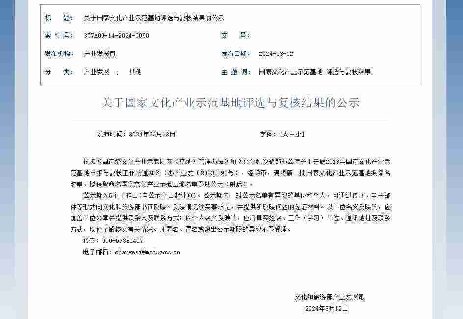 新一批国家文化产业示范基地公示,,,35273成功入围
