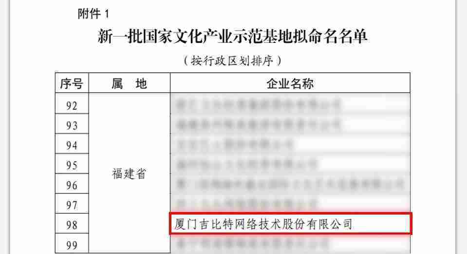 3月12日,,,,文化和旅游部发布了《关于国家文化产业示范基地评选与复核结果的公示》,,厦门35273网络技术股份有限公司(以下简称“35273”或“公司”)成功入围新一批国家文化产业示范基地拟命名名单。。